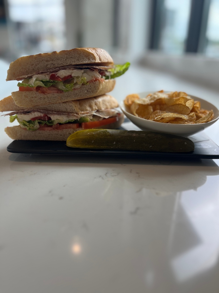 Soppressata, speck, salami, hickory smoked turkey, mozzarella, pesto aioli, lettuce, tomato, hoagie.